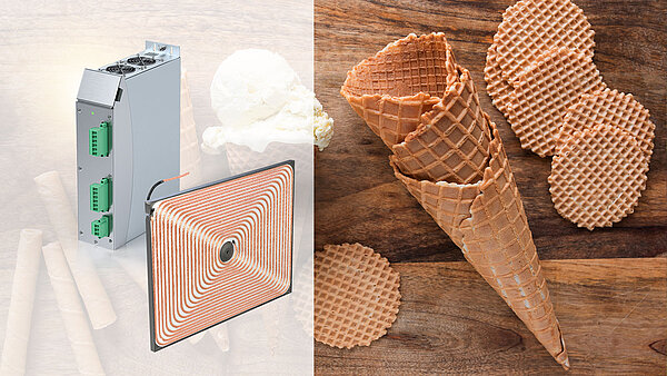 Kendrion offers an induction-based modular heating system with up to 100kW power, which can be used for example in wafer baking machines. For this purpose, precisely fitting surface inductors are used that provide the required heat in the baking plates precisely, quickly and evenly, thus ensuring a perfect baking result.