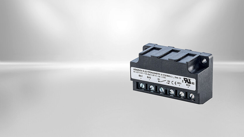 The product range of Kendrion contains a variety of electronic components for the control of electromagnetic actuators such as brakes and magnets. A variety of the properties of actuators can be considerably improved through the use of control modules. Reaction times are significantly optimised by overexcitation functions and fast shutdown.