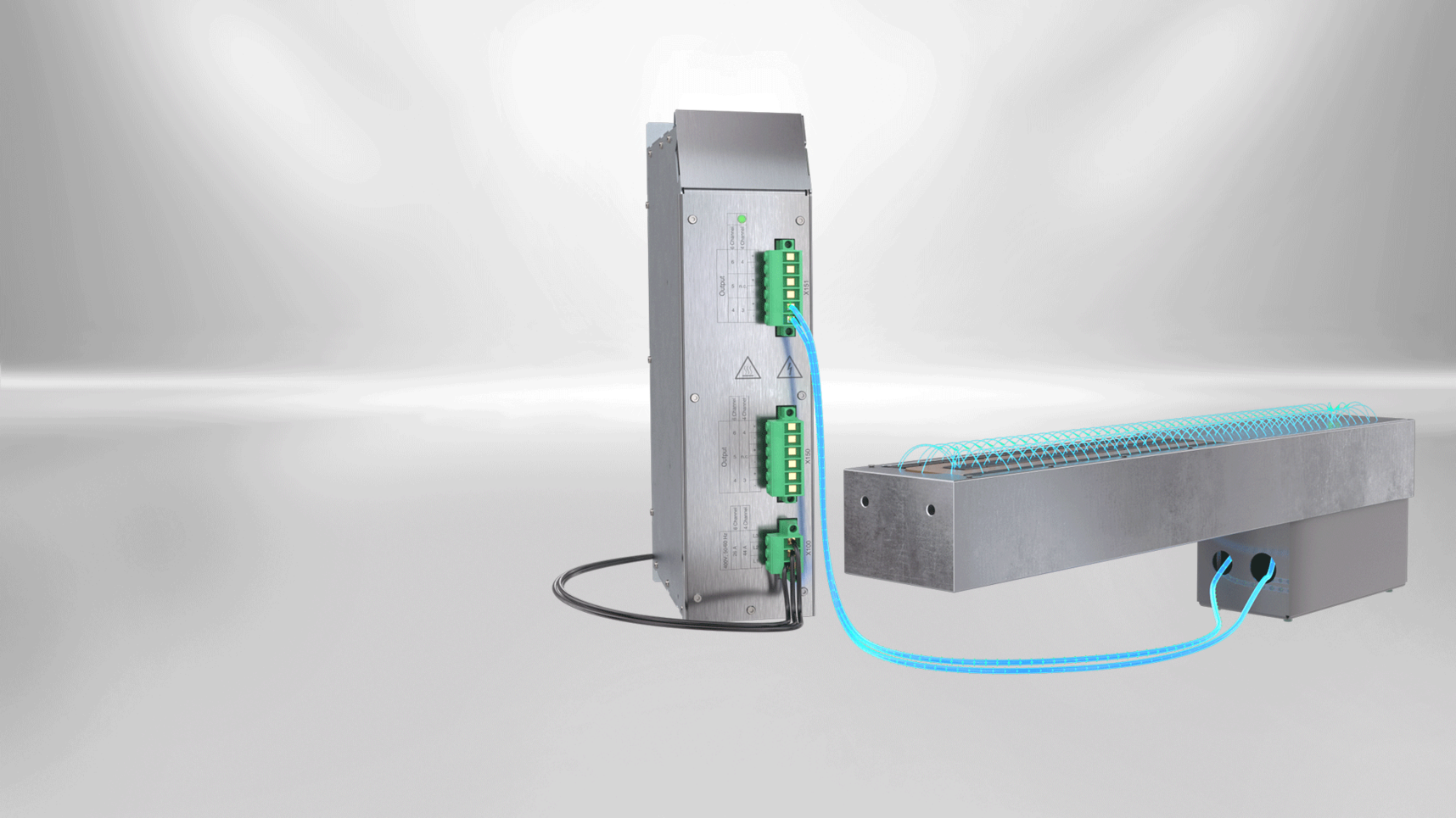 Die Kendrion Induktionsgeneratoren sind als modulares System aufgebaut. Sie bestehen aus einem Controller und bis zu 7 anreihbaren Induktionsgeneratoren. Der Controller kann über eine Feldbusschnittstelle (z.B. PROFINET®) in die Steuerung einer Maschine integriert werden. Die Steuerung der einzelnen Induktionsgeneratoren und das Abrufen von Zustandsmeldungen erfolgt für alle angeschlossenen Generatoren über den zentralen Controller. Je nach Konfiguration kann der Controller auch die Regelung der Heizkanäle mit integrierten PID – Reglern realisieren. Die Geräte sind für den Schaltschrankeinbau konzipiert.