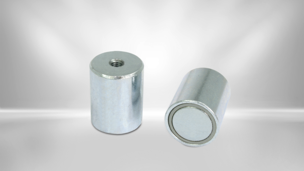 Stabgreifer mit einem Neodym Magnet im Stahlgehäuse. Die maximale Haftkraft wird erreicht bei vollflächiger Auflage auf einem metallischen Untergrund. Der Stabgreifer hat mittiges Innengewinde.