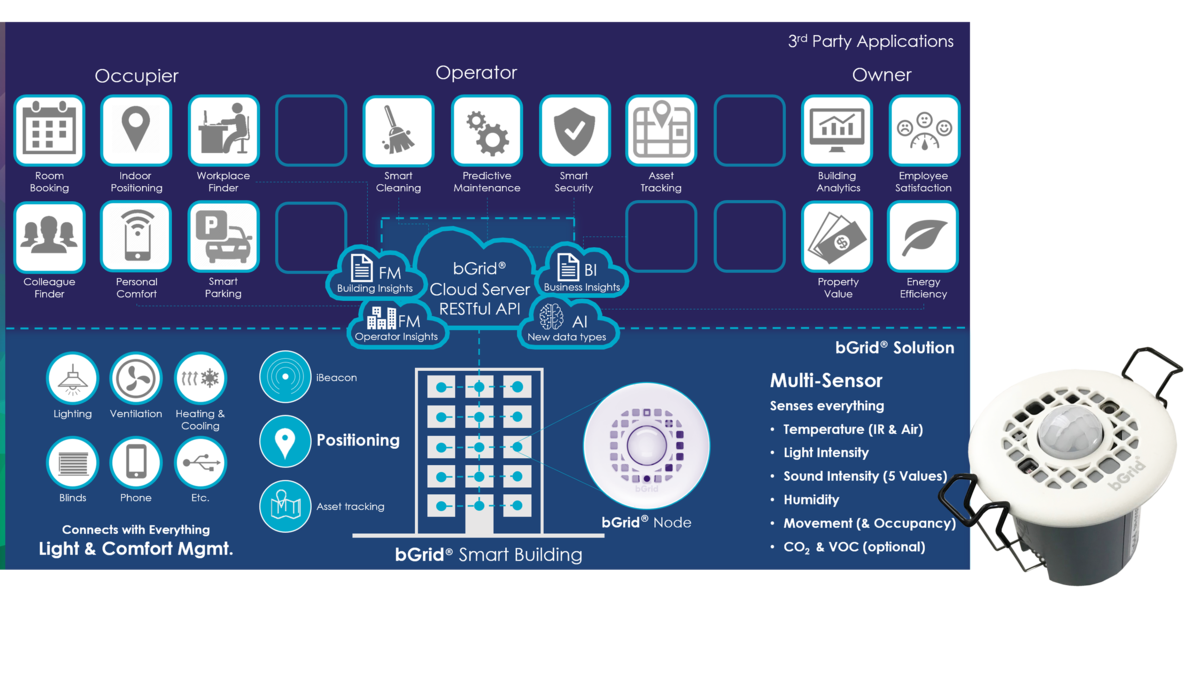 3T has developed the electronics and embedded software of multi-sensor node and worked in strong collaboration with Priva and bGrid on this multi-sensor unit for smart buildings. The sensor solution consists of an infrastructure composed of multiple sensor nodes in a building. Data collected from the sensor nodes are transmitted to a software platform, enabling real-time data processing, security and monitoring of the system. With an open API interface, the data is made available to various smart building applications. There are now more than 50 apps compatible with the sensor solution. The apps enable functions such as dynamic room booking, predictive maintenance and smart cleaning of premises.