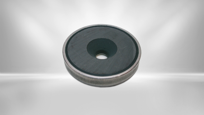 Permanent magnetic flat grippers from Kendrion are available in different sizes, materials and designs. They are made of hard ferrite, NdFeB or SmCo, with stainless steel or galvanized housing. Various designs such as threaded bushings, threaded pins and different bores are possible. Due to their design, the flat grippers have only one holding surface. Of all the other surfaces of the gripper magnet body assumes no magnetic force. The permanent magnets are non-aging and have high holding forces.
