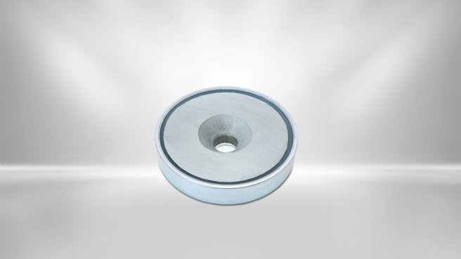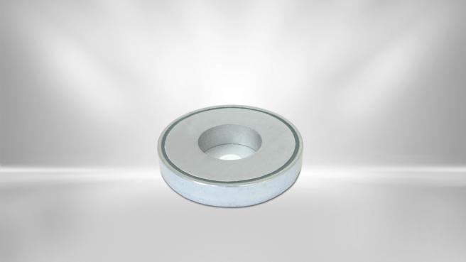 Permanent magnetic flat grippers from Kendrion are available in different sizes, materials and designs. They are made of hard ferrite, NdFeB or SmCo, with stainless steel or galvanized housing. Various designs such as threaded bushings, threaded pins and different bores are possible. Due to their design, the flat grippers have only one holding surface. Of all the other surfaces of the gripper magnet body assumes no magnetic force. The permanent magnets are non-aging and have high holding forces.