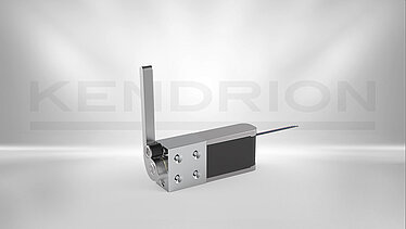 The BSM043-03 bistable rotary magnet has been specially designed as a perfect solution for safe storage and retrieval as well as transport of goods. The assembly consists of a rotary magnet with a 90° angle of rotation, to the axis of which an aluminum slider is attached. The BSM043-103 with free leads is available as a left-rotating version (BSM043.00103) or as a right-rotating version (BSM043.00104).