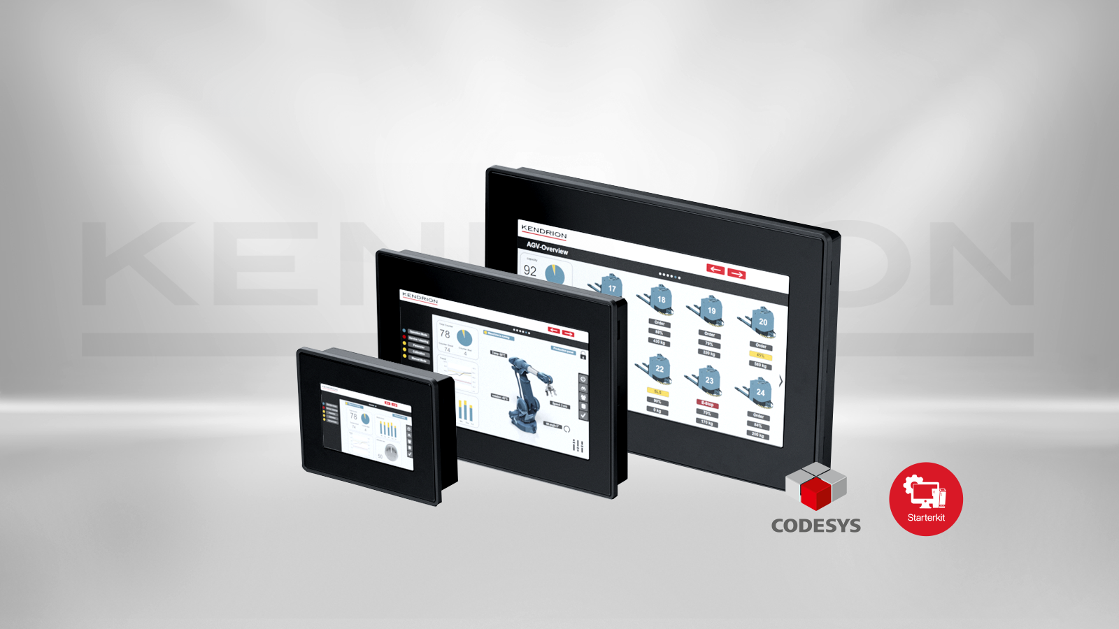Each Kuhnke CODESYS Starterkit can easily be extended by a CODESYS HMI Touch display. Only connect the display to the Starterkit via an Ethernet cable, connect in with power supply and download a project on the HMI device. The programming, the connection of the program with the PLC as well as the steps to create an own visualization are explained in detail by several examples that can be downloaded comfortably in our download area.