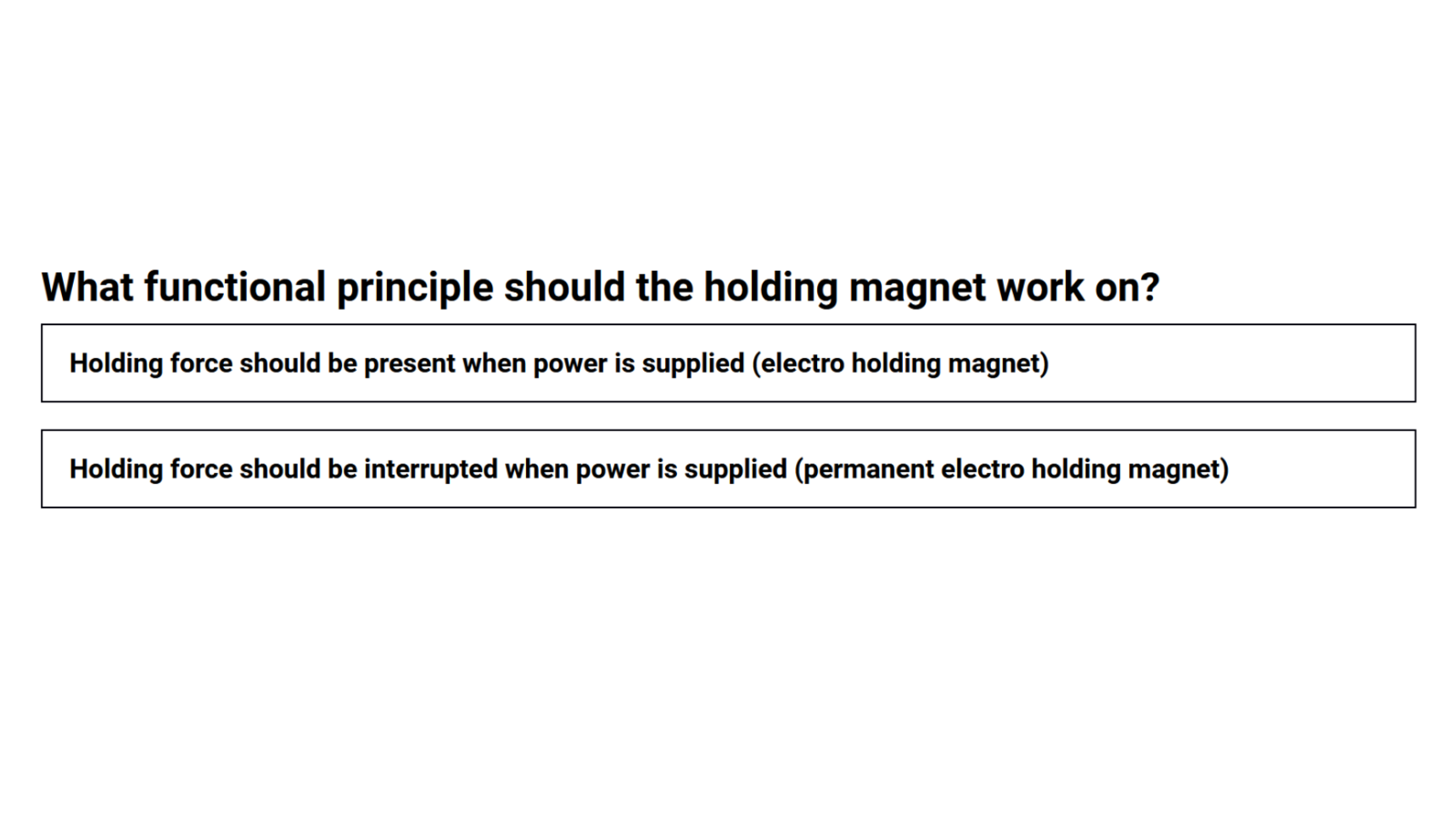 In case of permanent electro-holding magnets, the permanent magnetically produced holding force FH is neutralised by activation of the supply voltage. In any case, the quality of neutralisation depends on the applied voltage (tolerance) and the coil temperature. A holding force FH = 0 N can only be achieved for the exact nominal current.